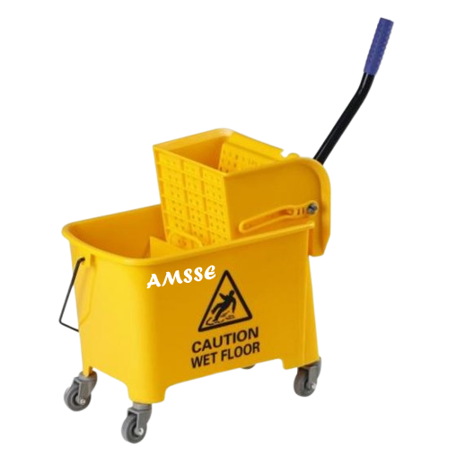 Amsse Single Bucket Mop Wringer Trolley Partition 10Lt + 10Lt =20Ltr